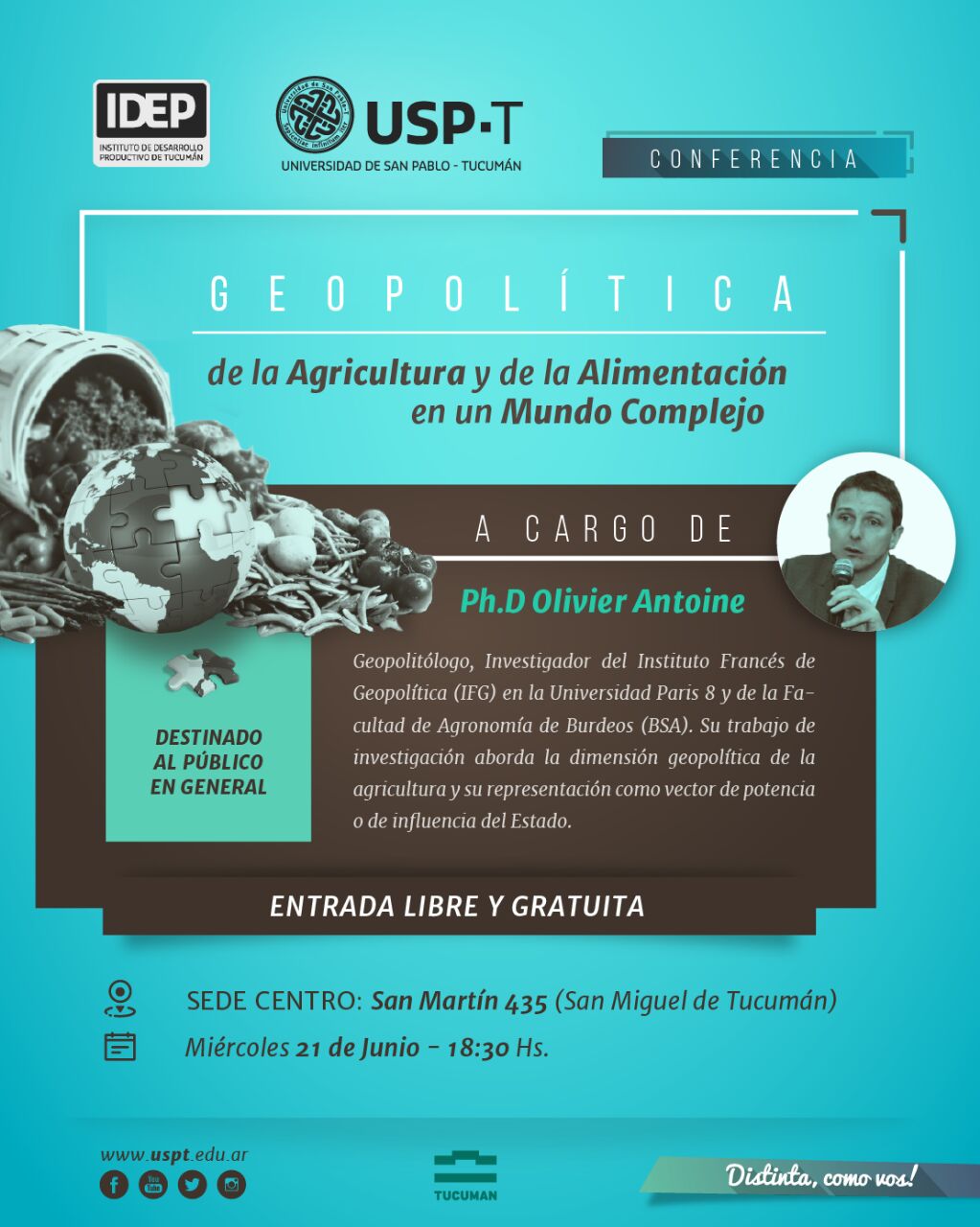 ESTE MIÉRCOLES: El geopolitólogo Olivier Antoine, disertará sobre “Geopolítica de la Agricultura y de la Alimentación en un Mundo Complejo” en la San Pablo-T. El mundo actual vive una era compleja y de alta conflictividad, que provoca frecuentes tensiones, enfrentamientos étnicos y religiosos, migraciones masivas, guerras comerciales… En un marco de creciente expansión poblacional y […]
