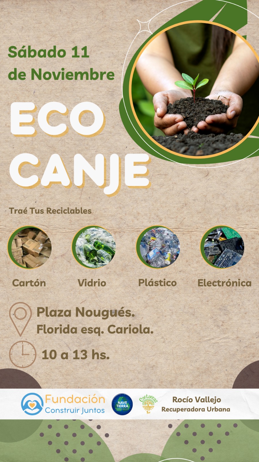 Si tenés reciclables y/o residuos electrónicos te esperamos el Sábado 11 de Noviembre en Plaza Nougués. Florida esq. Cariola desde las 10:00 hs hasta las 13:00 hs
