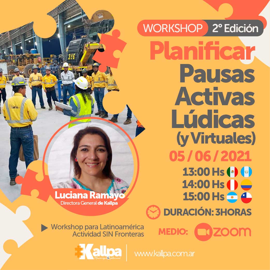 Luego de una fructífera primera edición, queremos informarles que se viene la segunda parte de este único Workshop sobre Pausas Activas Lúdicas dictado por la directora de Kallpa Luciana Ramayo!
