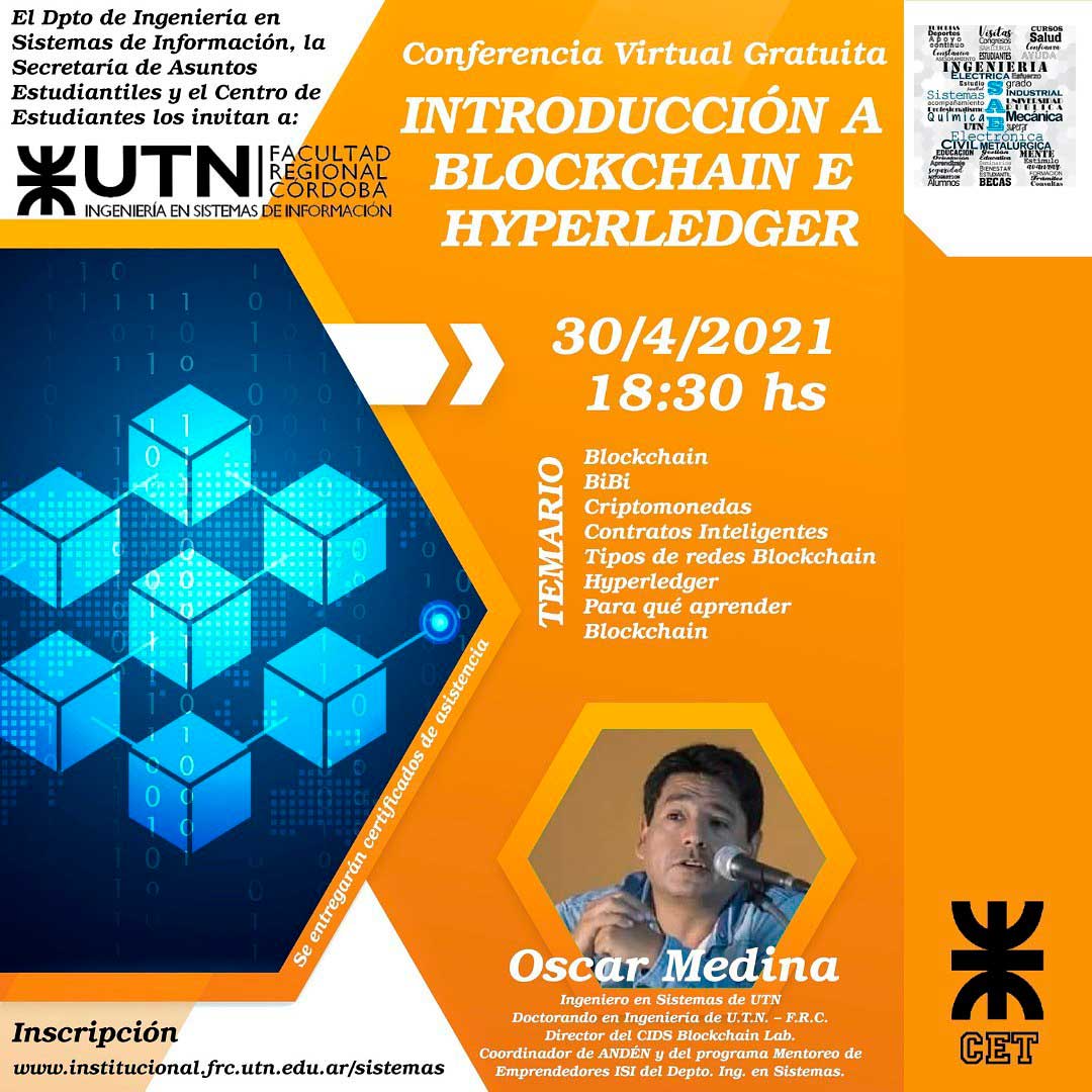 Conferencia Gratuita Organizada por el Departamento de Ingeniería en Sistemas de Información de la UTN – Facultad Regional Córdoba, en conjunto con la Secretaria de Asuntos Estudiantiles (SAE), y Centro de Estudiantes Tecnológicos (CET).