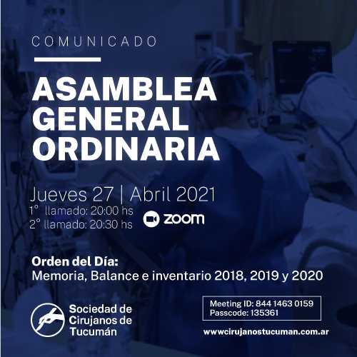 - Asamblea General Ordinaria – Sociedad de Cirujanos de Tucumán