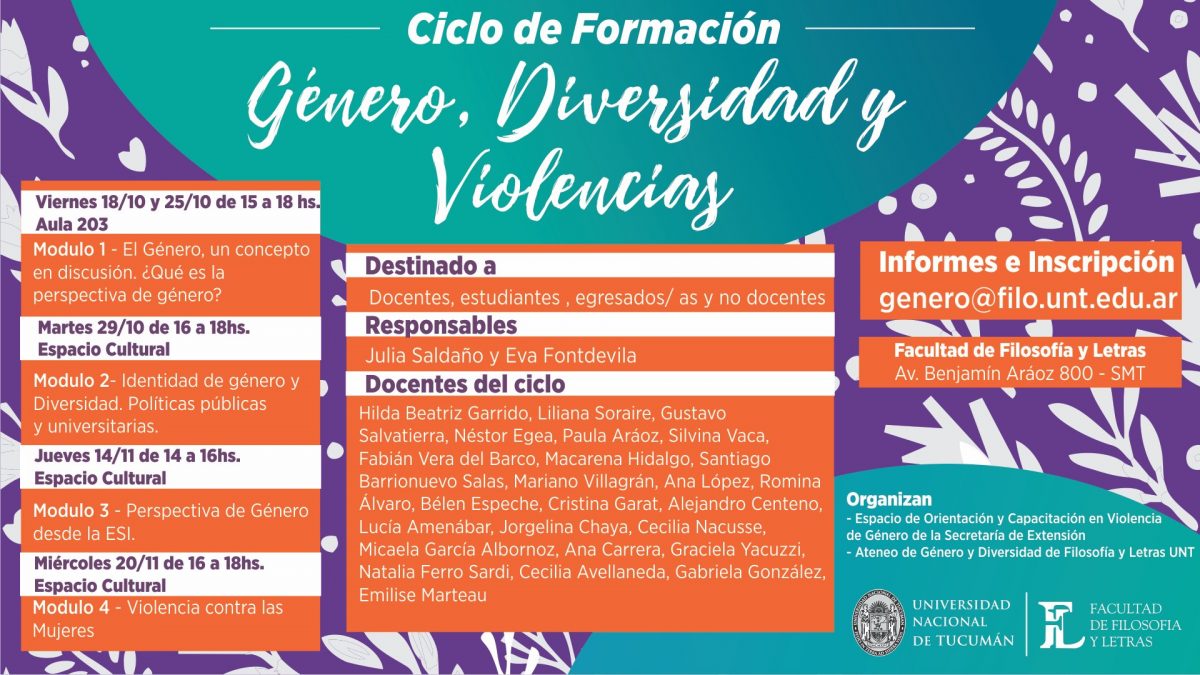 Jueves, 14 de noviembre de 2019 de 14:00 a 16:00 Facultad de Filosofía y Letras UNT Avenida Benjamin Aráoz 800, 4000 San Miguel de Tucumán