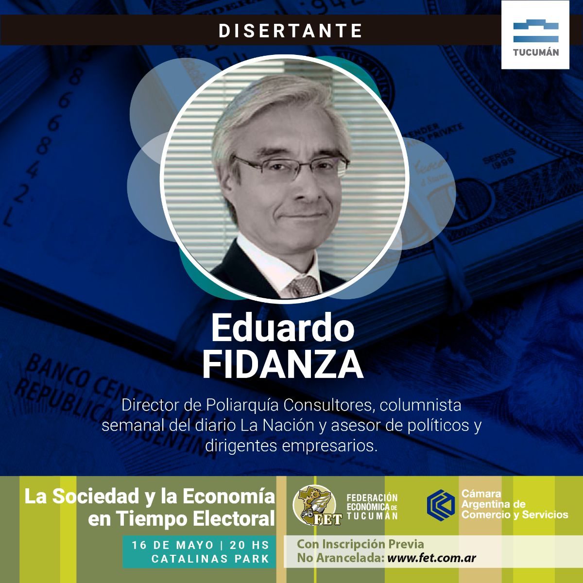 Eduardo Fidanza y Roberto Cachanosky disertarán sobre “La sociedad y la economía en tiempo electoral” Este evento, organizado por la Federación Económica de Tucumán y la Cámara Argentina de comercios y servicios, se realizará el 16 de marzo a las 20 horas.