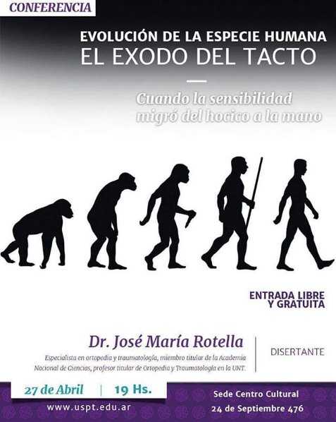 Los invitamos a la Conferencia “Evolución de la especie humana. El éxodo del tacto: cuando la sensibilidad migró del hocico a la mano”. El disertante es el Dr. José María Rotella, especialista en ortopedia y traumatología, miembro titular de la Academia Nacional de Ciencias, profesor titular de Ortopedia y Traumatología en la UNT. La […]