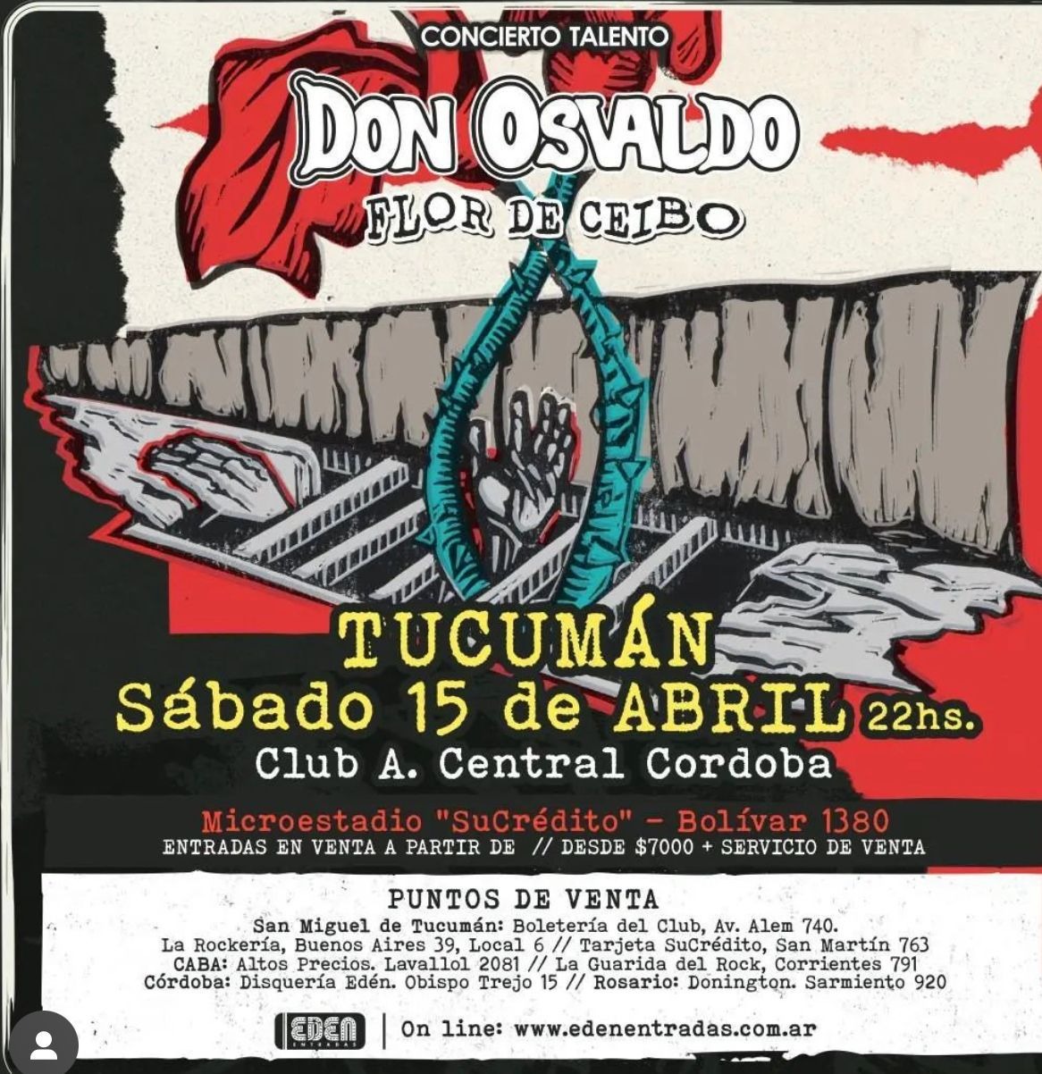 El día sábado 15 de Abril a las 22hs. en el Club A. Central Córdoba Av. Alem 790, T4000 San Miguel de Tucumán, Tucumán