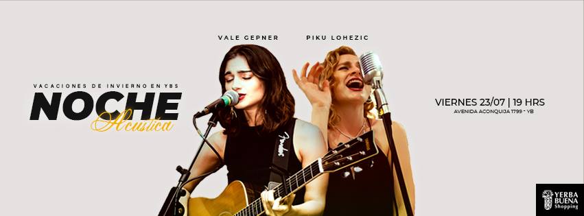 Te invitamos a presenciar una noche mágica como en los viejos tiempos, compartí con nosotros “Noches acústicas” 🌆🎵🎶 un viaje musical lleno de emociones y mucho más, con las voces de Piku Lohezic y Vale Gepner.