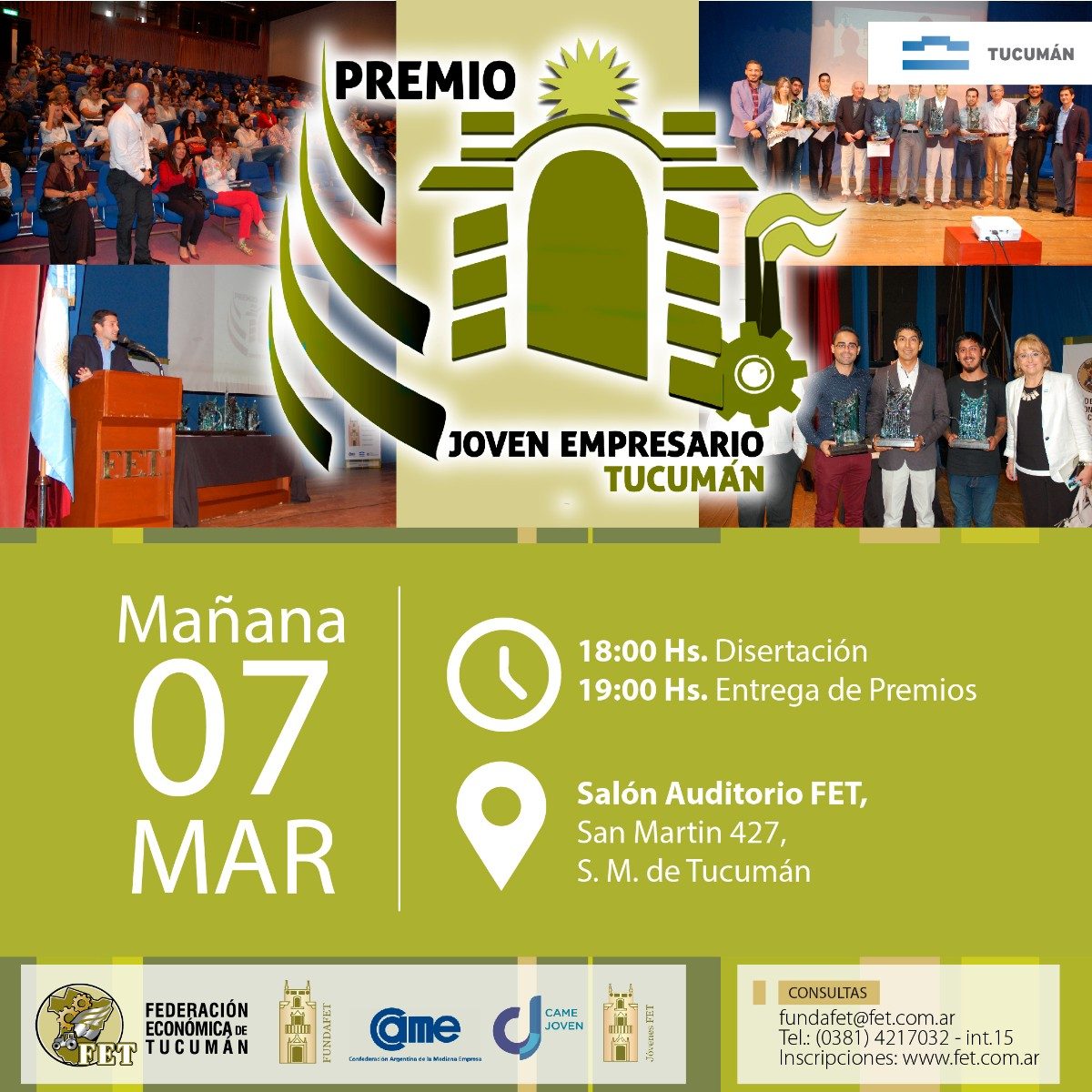 La Federación Económica de Tucumán (FET) premiará en diferentes categorías a los jóvenes empresarios y empresarios que se destaquen en su labor. En este sentido convoca a todos los jóvenes que trabajen en este rubro a postularse para la entrega del premio “Jóven Empresario Tucumán”. Además, quién sea galardonado con esta distinción, además representará a la provincia nivel […]