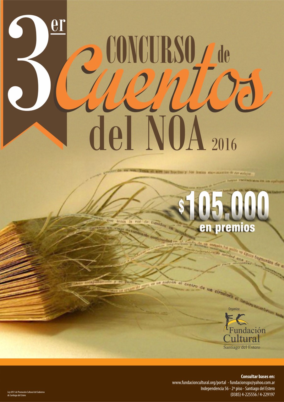 Con el fin de promover la creación literaria del Noroeste Argentino, la Fundación Cultural Santiago del Estero convoca a escritores argentinos residentes en Santiago del Estero, Tucumán, Salta, Jujuy y Catamarca al III Concurso de Cuentos del NOA. Podrán participar todos los escritores de nacionalidad argentina nacidos y residentes en la región NOA, mayores de […]