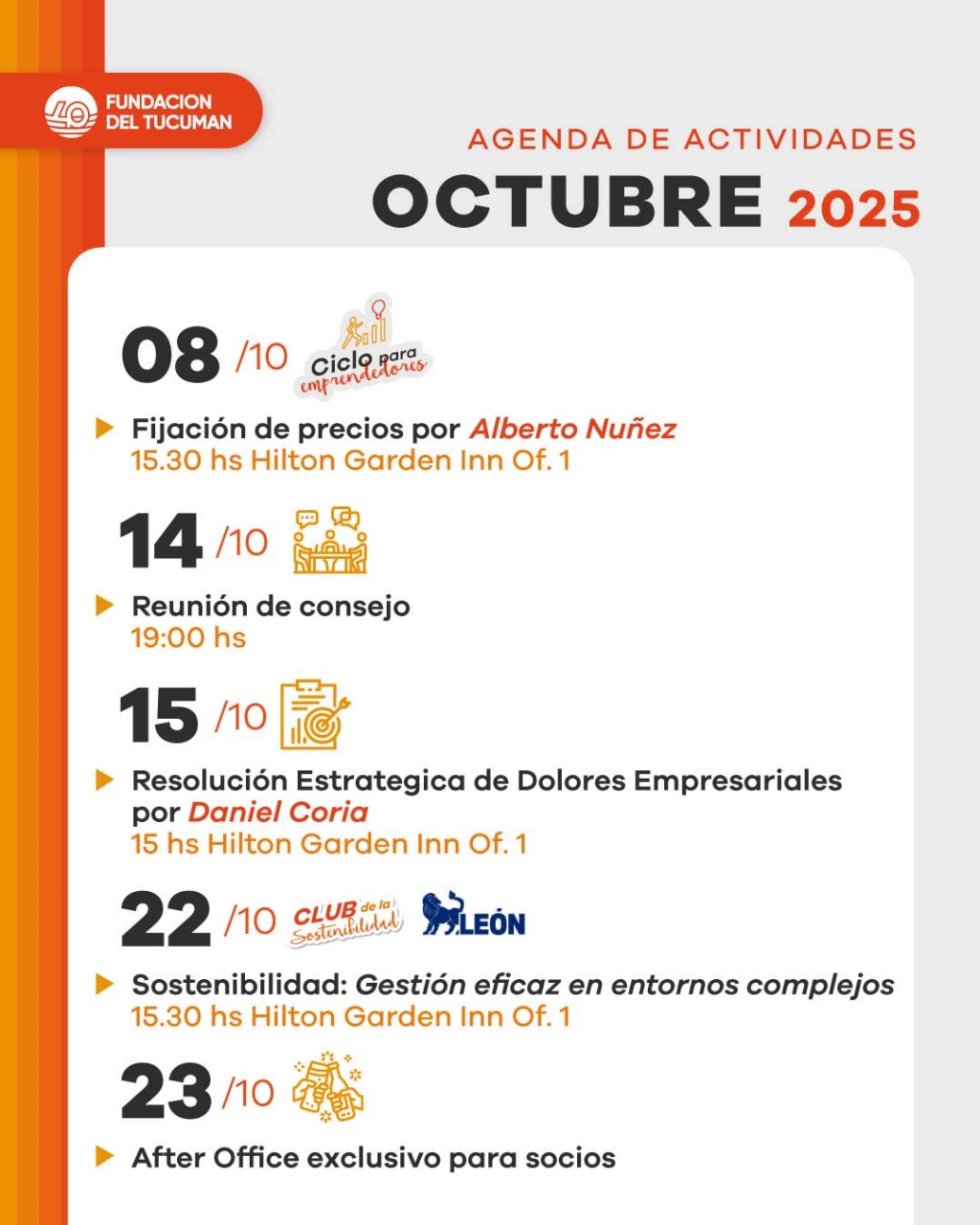 Fundación del Tucumán presenta sus próximas actividades de capacitación para emprendedores y empresarios, con foco en gestión, estrategia y eficiencia.