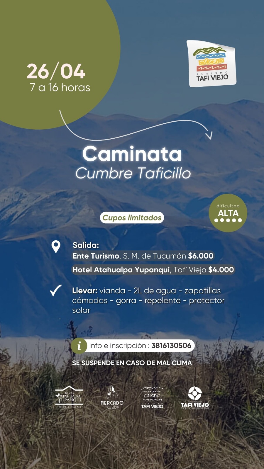 Viví una jornada diferente con la Caminata Cumbre Taficillo. El 26 de abril desde las 7:00 hs, salimos desde San Miguel de Tucumán hacia una aventura al aire libre para disfrutar del paisaje, el movimiento y el encuentro.
