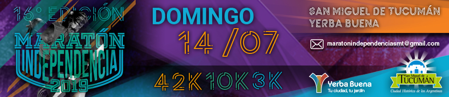 1. ORGANIZACIÓN Y FISCALIZACIÓN: 2. INSCRIPCIONES: 3. FECHA, LUGAR y HORARIOS: 4. DISTANCIAS, CATEGORÍAS y PREMIOS: 5. SEGURIDAD, HIDRATACIÓN y VARIOS: 1. ORGANIZACIÓN Y FISCALIZACIÓN: EL MARATÓN INDEPENDENCIA 2019, está organizada por las Direcciones de Deportes y Recreación de las Municipalidades de San Miguel de Tucumán y la de Yerba Buena. Está fiscalizada por la […]