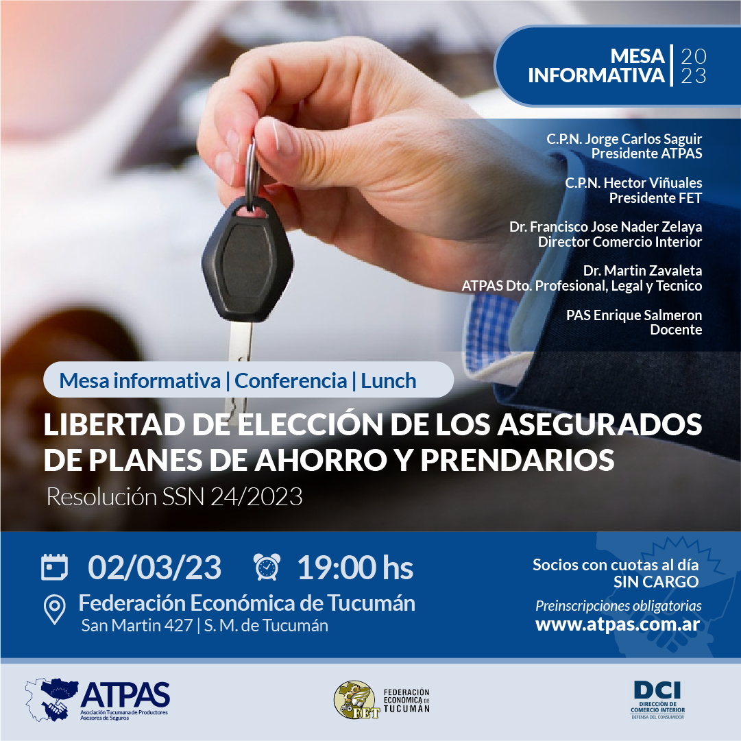 Invitamos a nuestros socios a participar de una nueva Mesa Informativa: “LIBERTAD DE ELECCIÓN DE LOS ASEGURADOS DE PLANES DE AHORRO Y PRENDARIOS”.