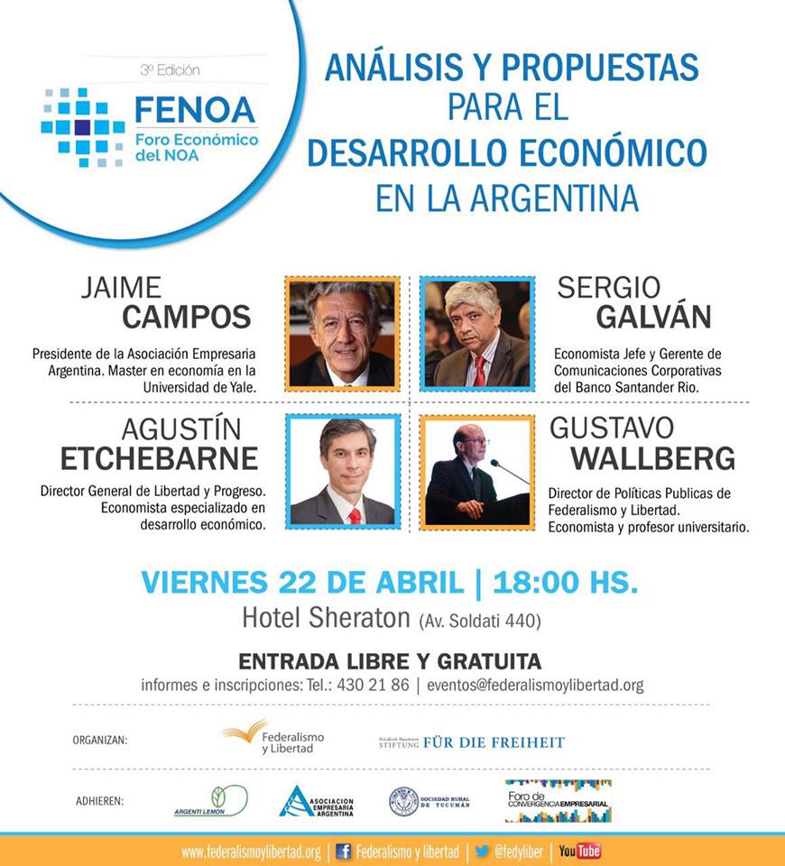 La Fundación Federalismo y Libertad y la Fundación Friedrich Naumann, invitan a participar de la 3ª Edición del Foro Económico del NOA (FENOA), que se realizará el 22 de abril próximo, a las 18 horas, en el Sheraton Tucumán Hotel (av. Soldati 440, San Miguel de Tucumán) en vista de la celebración del Bicentenario de […]