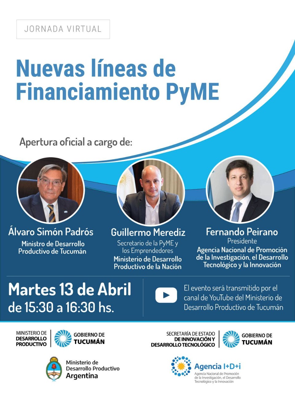 El Ministro de Desarrollo Productivo de Tucumán, Ing. Álvaro Simón Padrós, invita a participar de la Jornada Virtual: Nuevas Líneas de Financiamiento para PyMEs de Tucumán.