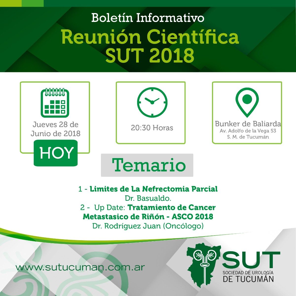 - Reunión científica de la Sociedad de Urología de Tucumán 2018