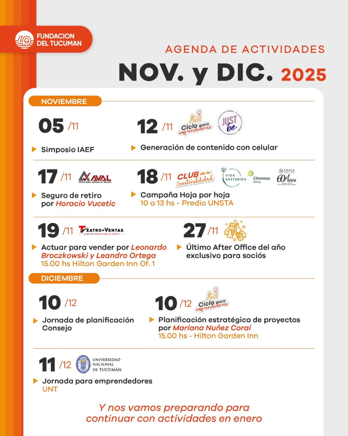 La Fundación del Tucumán presenta su agenda de actividades para noviembre y diciembre 2025, con capacitaciones, jornadas empresariales y encuentros de emprendedores.