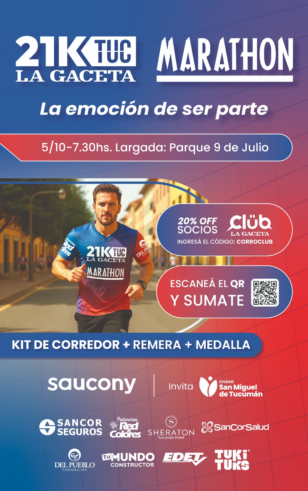 La 21K TUC Marathon organizada por La Gaceta se corre el 5 de octubre desde el Parque 9 de Julio. Kit, medalla, remera y beneficios para socios del Club La Gaceta.