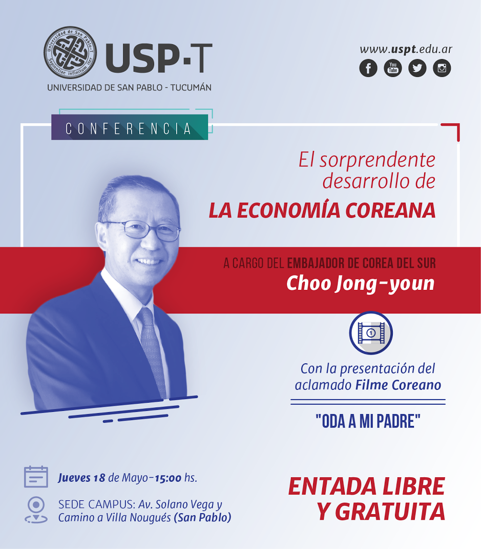 Como parte de los festejos por su décimo aniversario, la Universidad de San Pablo T invita a participar de la Conferencia “El sorprendente desarrollo de la economía coreana” a cargo del Embajador de Corea del Sur Choo Jong-youn que tendrá lugar el jueves 18 de mayo a las 15:00 Hs en el campus universitario (Av. Solano Vera y Camino […]