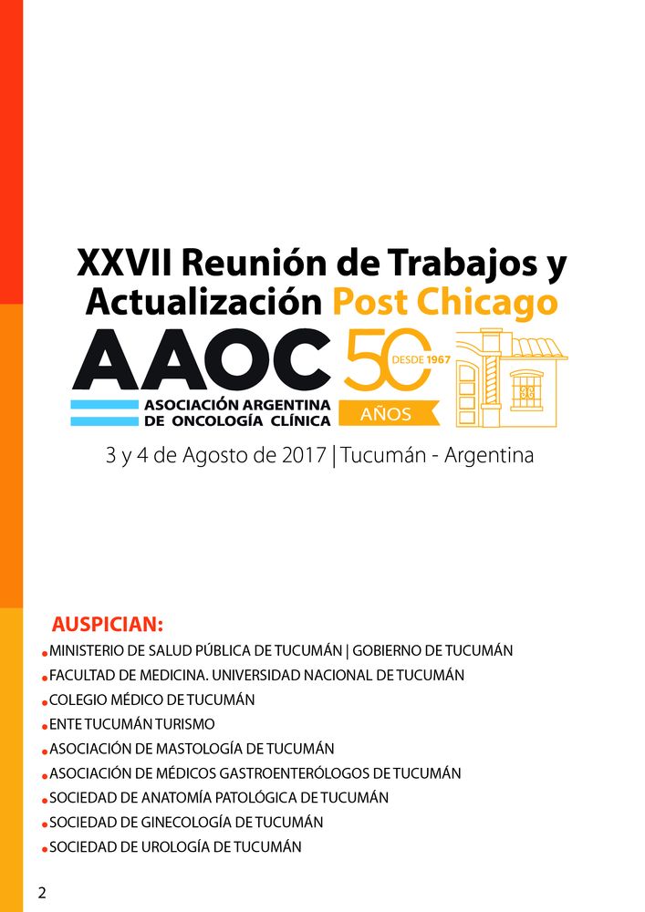 La Asociación Argentina de Oncología Clínica, realizo en Tucumán la XXVII Reunión de Trabajos y Actualización Post Chicago. Todo sucedio en los salones del Hotel Catalinas Park, con una gran convocatoria, se realizaron presentaciones de trabajos científicos, cursos de actualizacion, foros y simposios de la industria. Este importante eventos estuvo organizado por Marcela Santoro, especialista en organización de congresos & Convenciones. Veamos todo lo que paso por la pantalla de SEDE Tucumán.